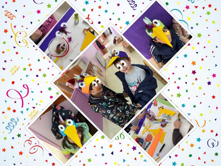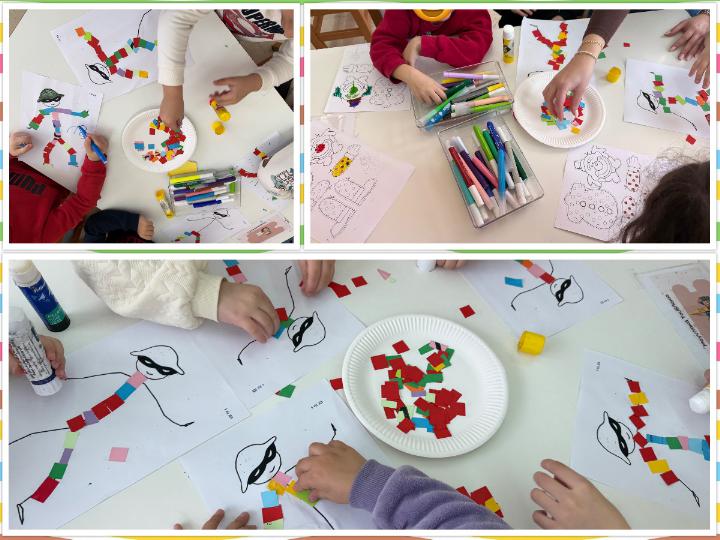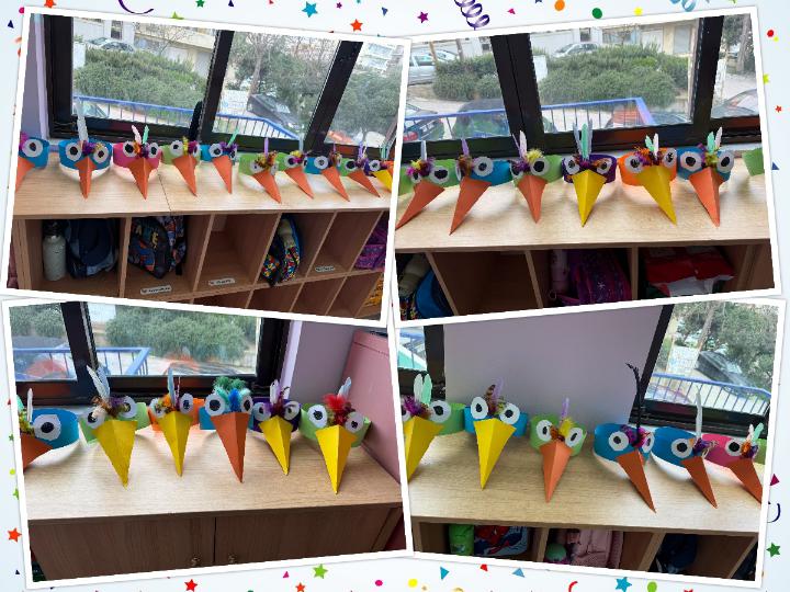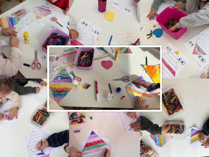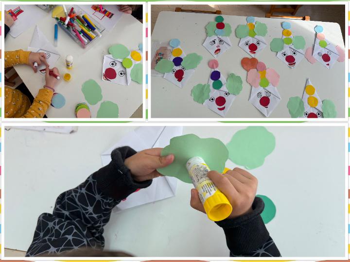 Χρωματίζουμε με λαδοπαστέλ ή ξυλομπογιές, κόβουμε, κολλάμε ματάκια,